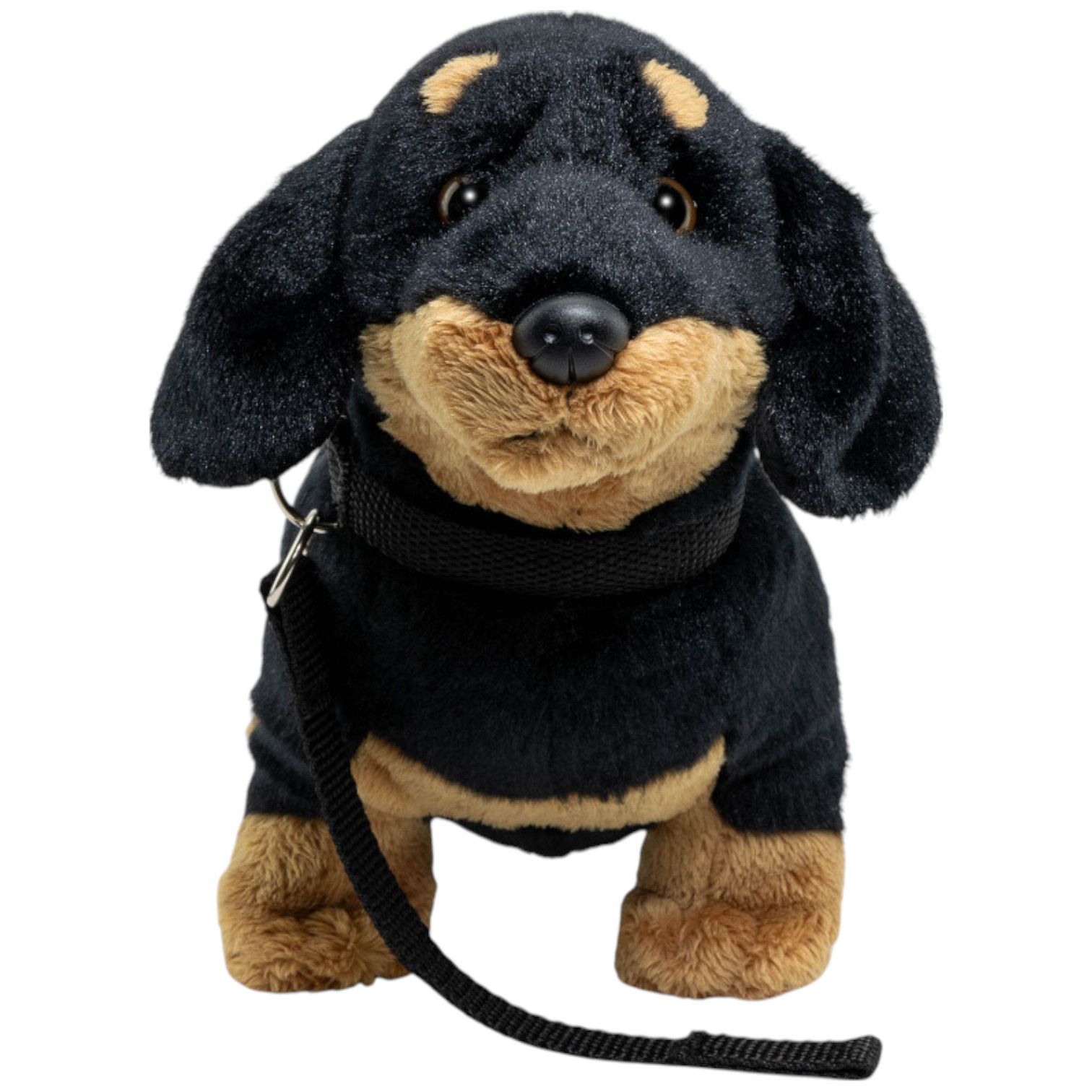 Preview: Carl Dick Plüschtier Dackel stehend schwarz mit Leine