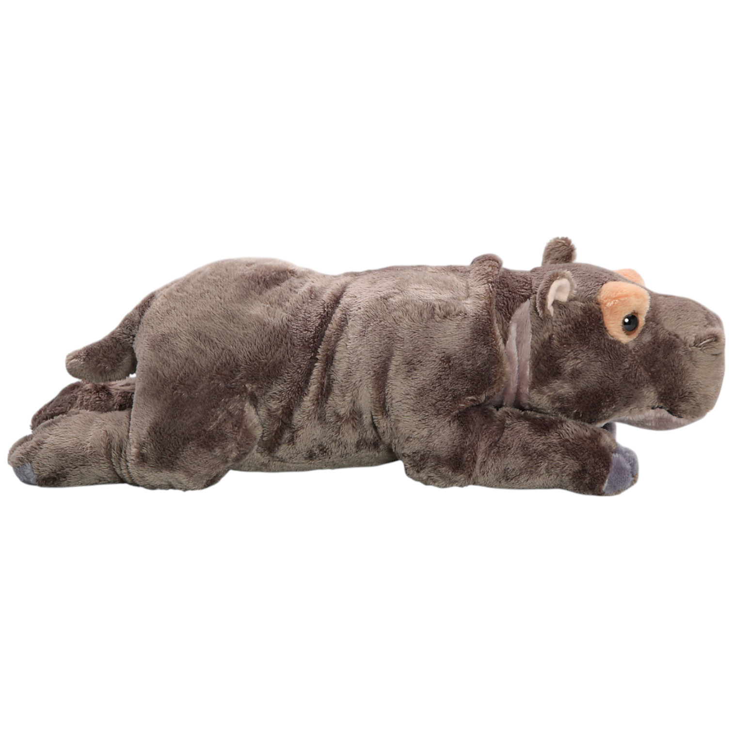HippoPlush Toy, Soft Toy, Stuffed AnimalLength: 42cm/16.5 inchesWidth: 15cm/6 inchesHeight: 15cm/6 inchesMaterial:Fur: polyesterFilling: polyester fiber and granulate fillingBrown safety eyes